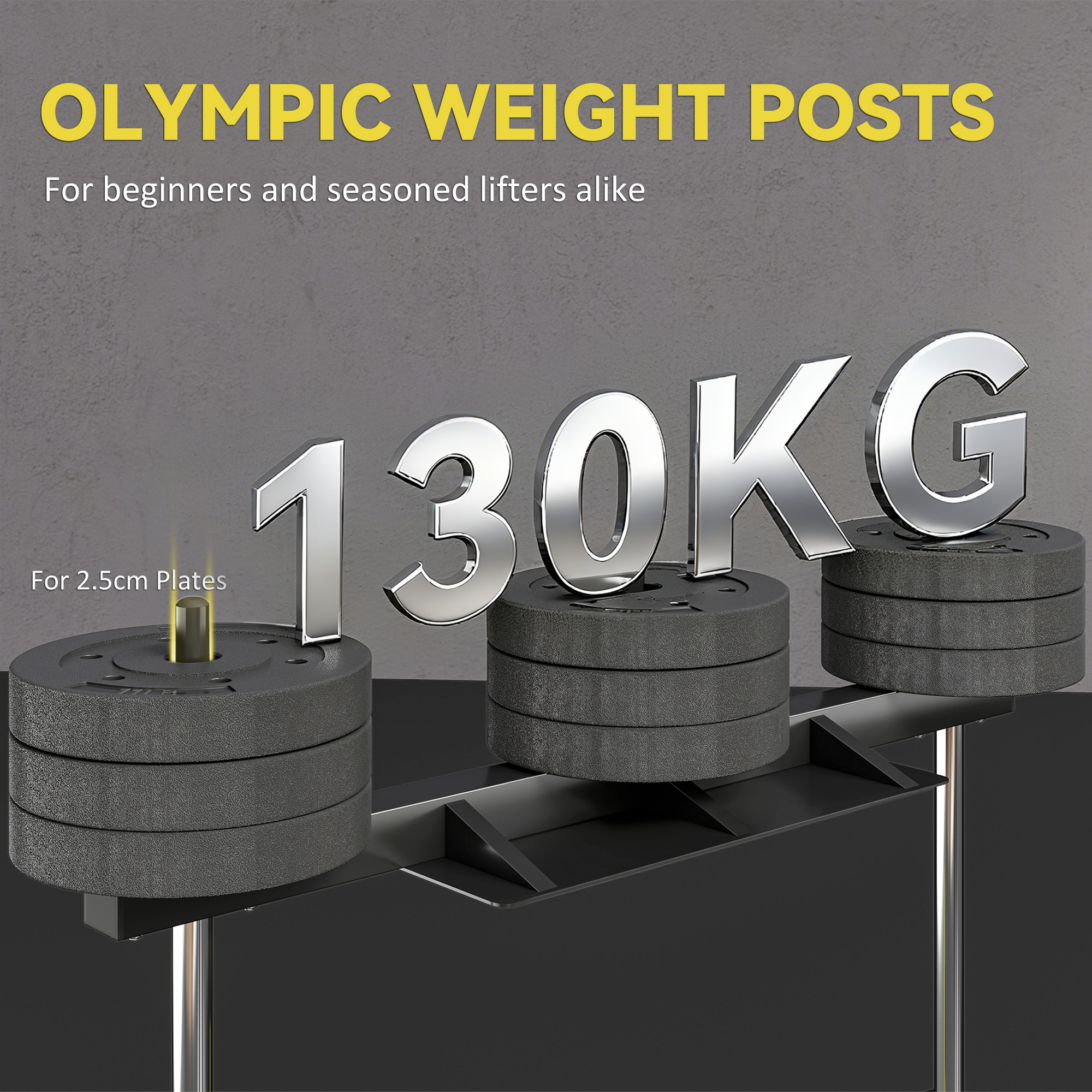 - Accommodates three weight posts for adjustable resistance up to 130 kg