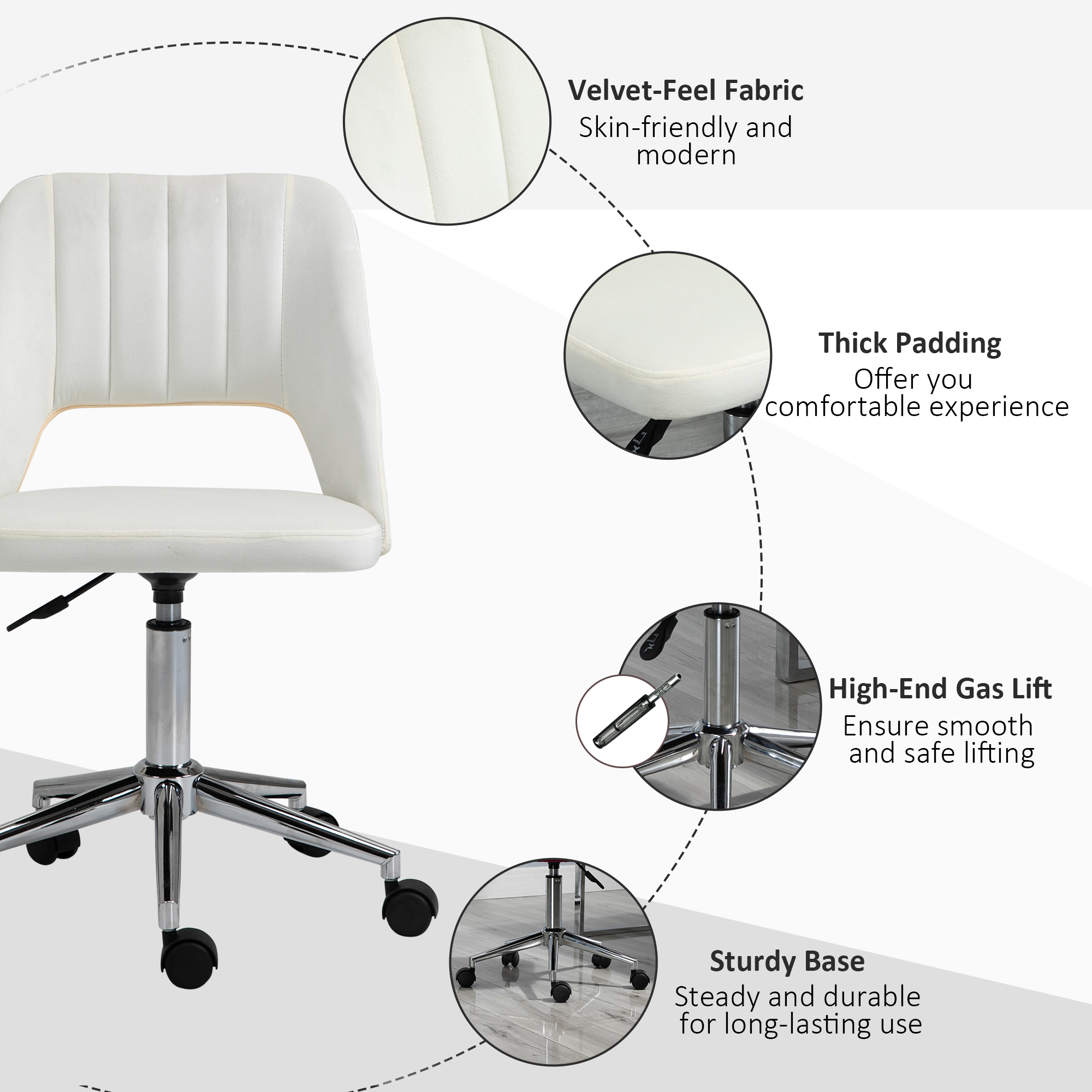 Sometimes we need to bring sophistication into the workday. And now it's easy with this Vinsetto office chair. Crafted into an armless design for a simplistic look, with plenty of sitting room, the comfy chair is wrapped in velvet-feel upholstery - a beautiful look and feel. Both the back and seat are filled with sponge for comfort, with the backrest providing support. The swivel seat moves with your body motions as you work, finished with five wheels on the base.