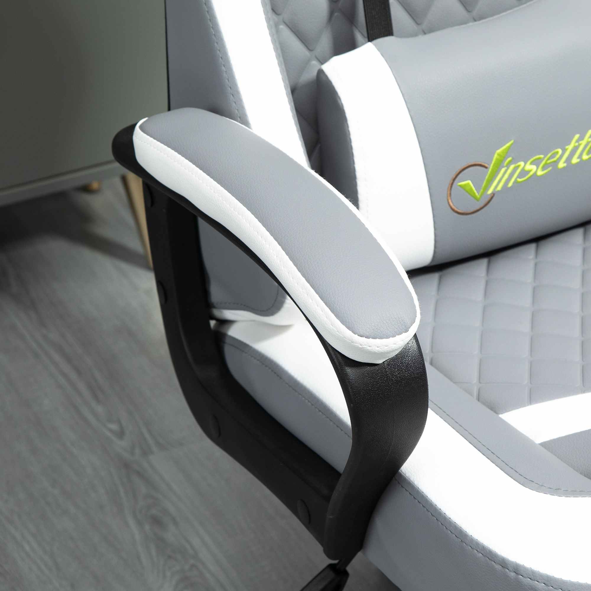 Be bold in your gaming comfort and style, thanks to this chair from Vinsetto. Its uber-cool design is formed of PVC leather upholstery, in a block colour pattern design, with a wing-shaped back for extra impact. Ergonomic design is formed of a large swivel seat to move around easily, a high back and fixed armrests, with thick padding all over to keep you comfortable. Chair also rocks if you want to relax. Finished with five wheels and also comes with a lumbar and neck pillow, with our signature branding stitched in.