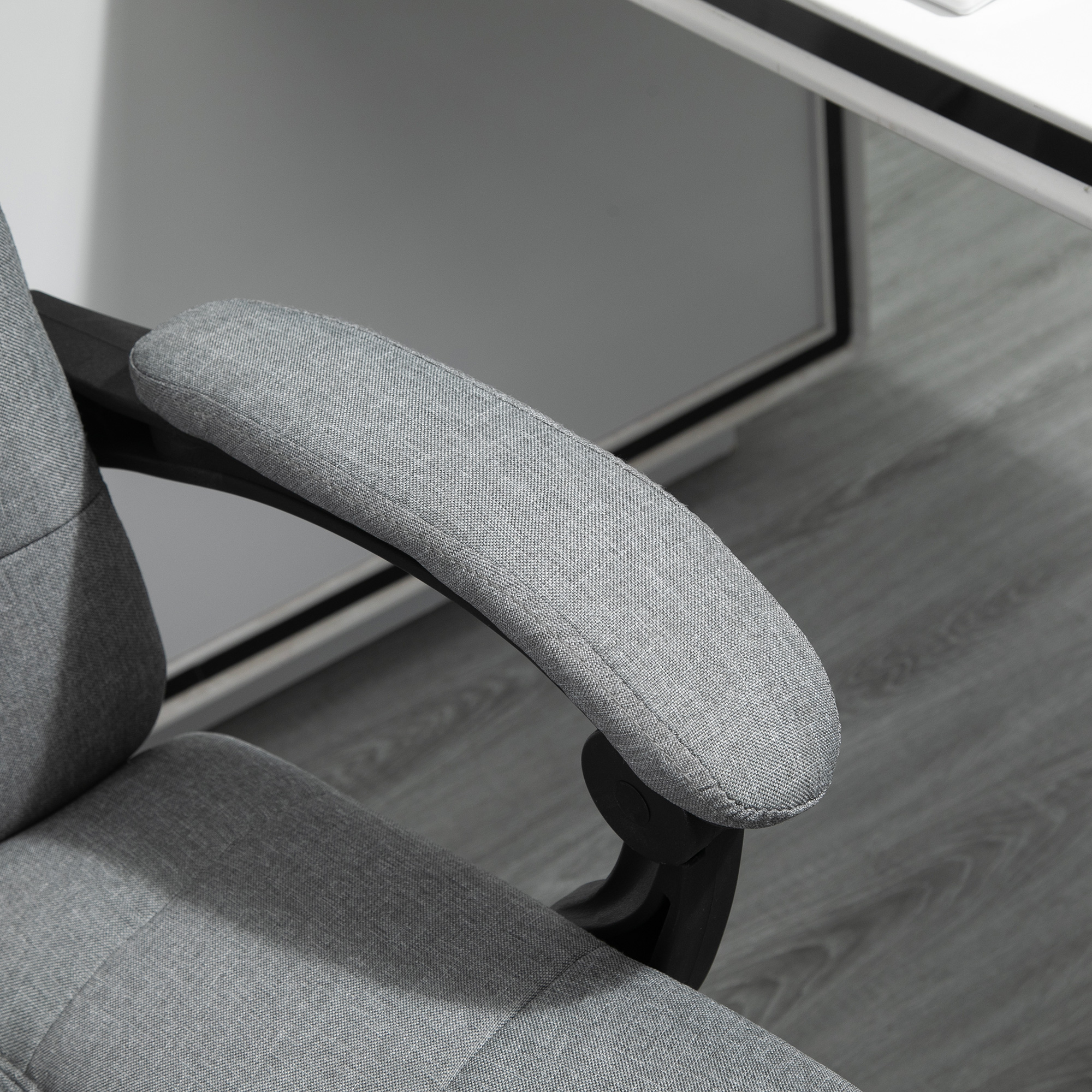 Experience comfort and relaxation with the Vinsetto home office chair. Its plush padding and removable head pillow make long sitting periods a breeze. Recline up to 155° and elevate your legs with the built-in footrest. Effortlessly glide across the floor with its wheeled base.