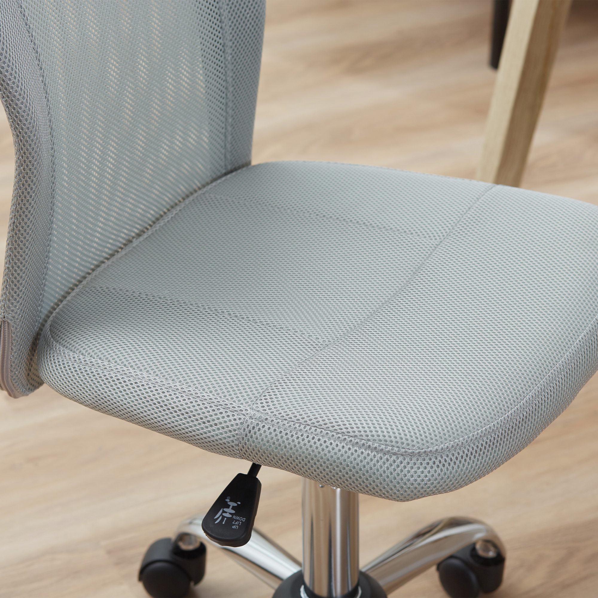 Turn your small area into a cozy, efficient home office with the Vinsetto mesh office chair. Designed for comfort, its padded sponge seat and breathable mesh back ensure you stay relaxed throughout workday. The gently curved back provides essential support, while the sturdy steel base with five wheels allows for effortless mobility. Its armless design fits neatly under any desk, making it perfect for compact areas. Elevate your home office experience with this elegant and space-saving solution.