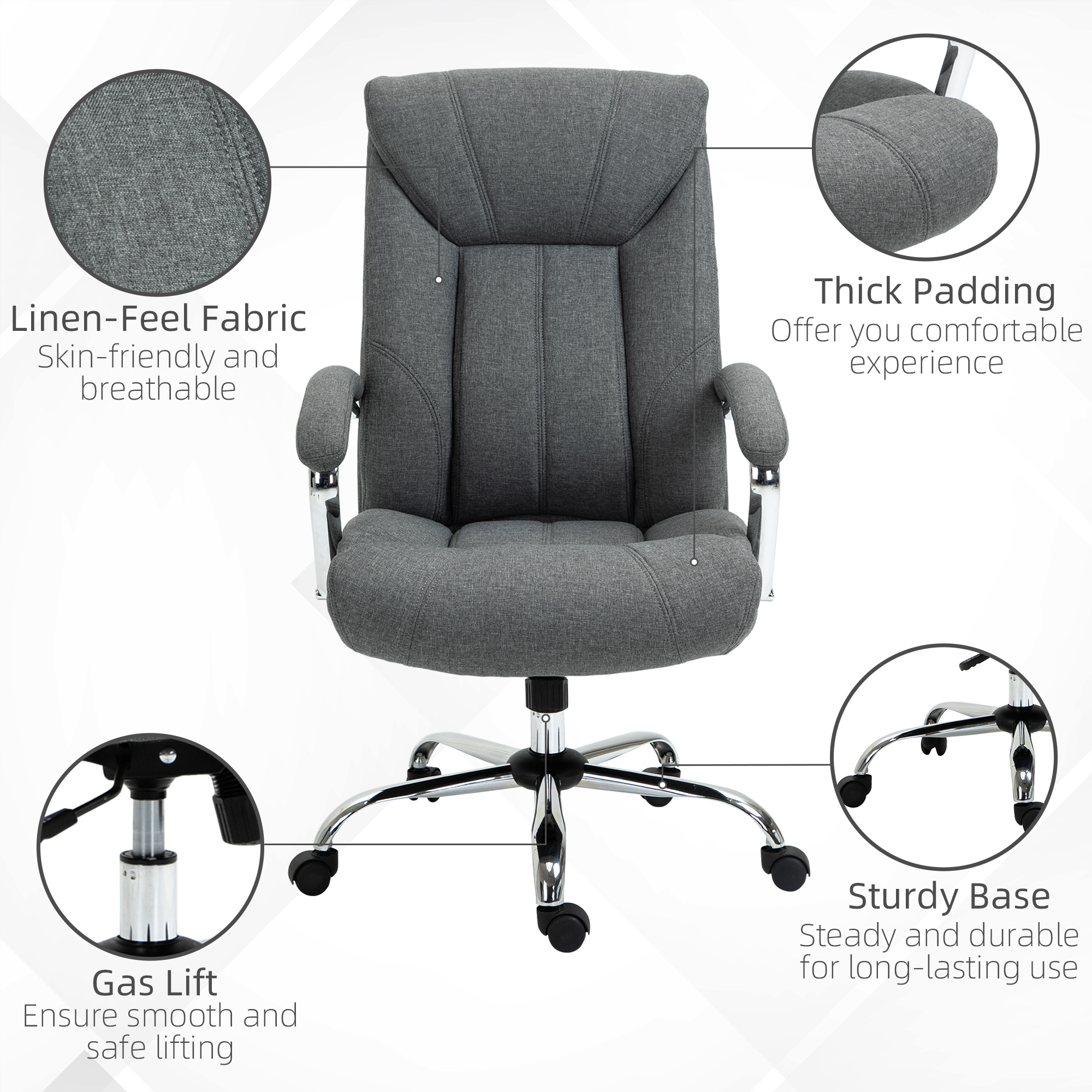 - Padded seat, back and armrests for comfort, wrapped in smooth linen-look upholstery