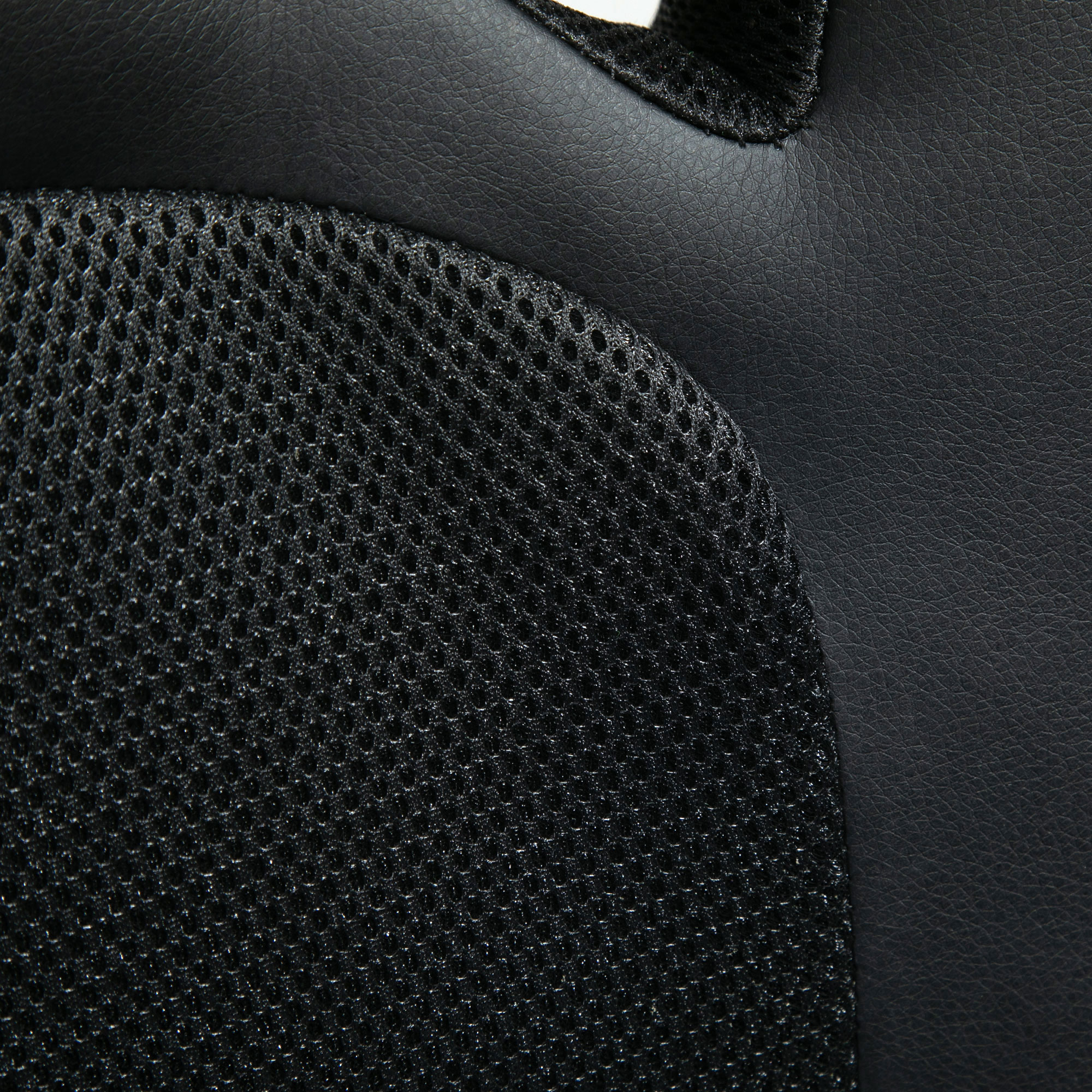 - Faux leather upholstery, with mesh panel for smooth-feeling style