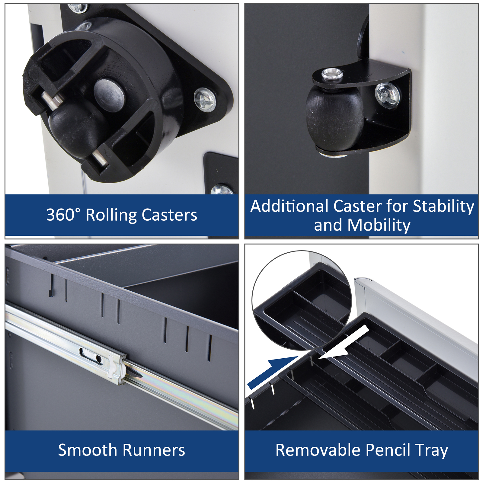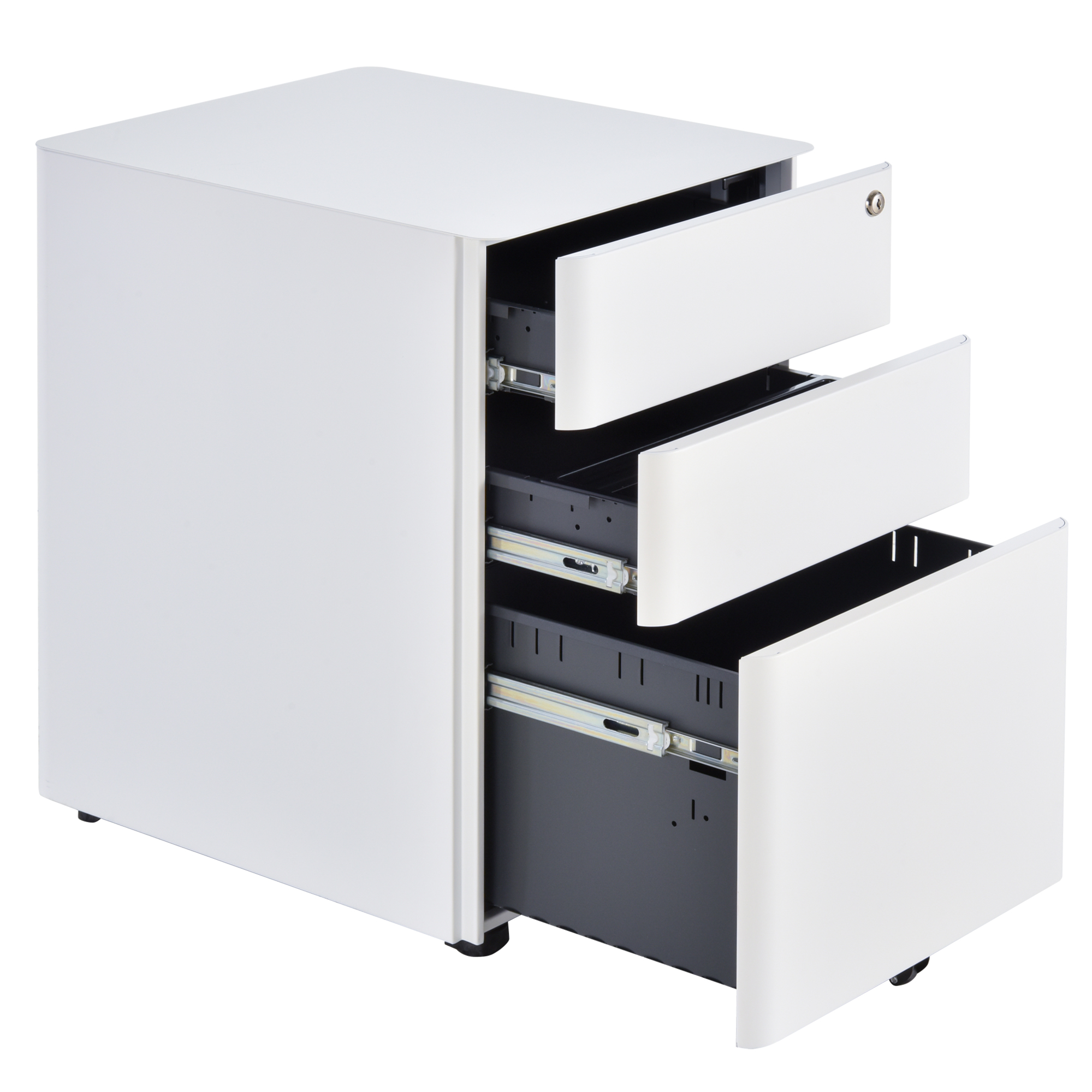 Maximise your space with the three drawer filing cabinet from Vinsetto that offers spacious storage and a top surface, doubling as a printer stand. Enjoy organised ease with adjustable hanging rail for three different file sizes and a lock to secure your important essentials. What's more, the Vinsetto lockable drawers with compact design fits neatly anywhere and rounded corners prevent accidental bumps, making it a great office ally.