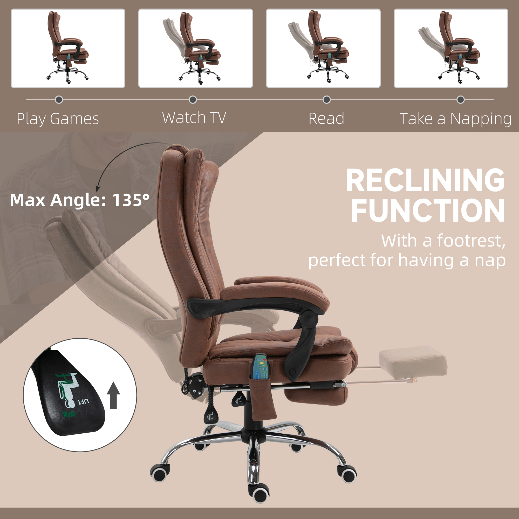 - Six vibration massage points on the back, lower back, and thighs