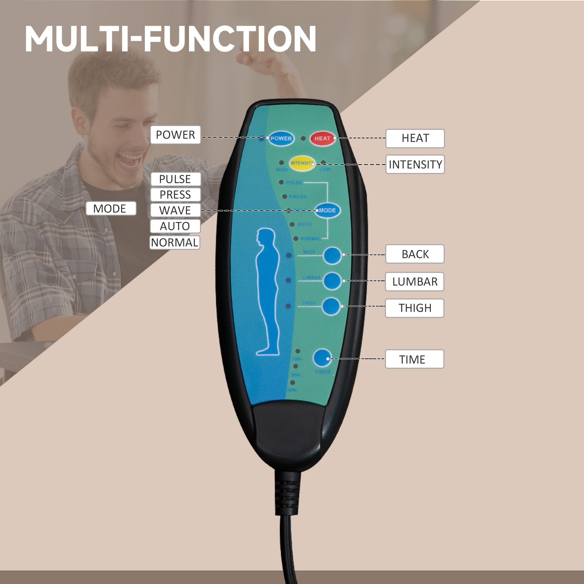 - Heating function in the waist enhances the massage effect
