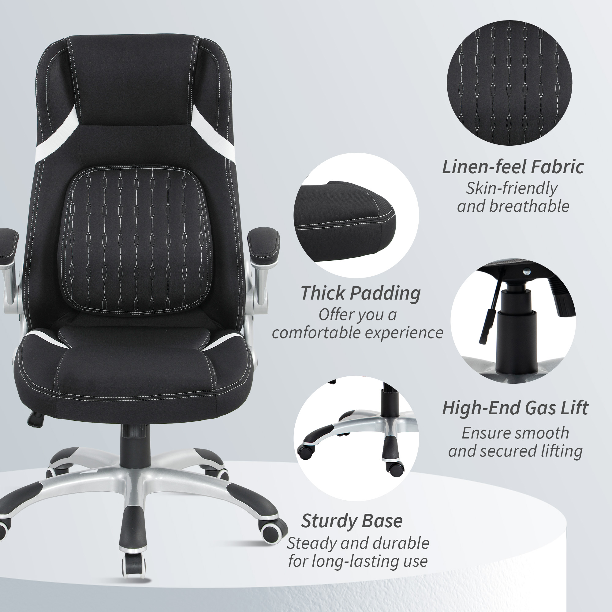 - High back for support, with foam padding and linen-look upholstery for comfort