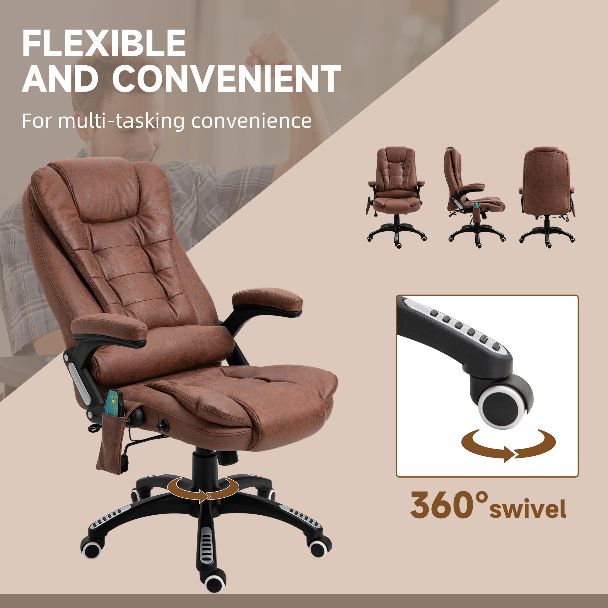 - Computer chair features six massage spots: two on shoulders, two mid/lower back and two on the bottom, with heating function