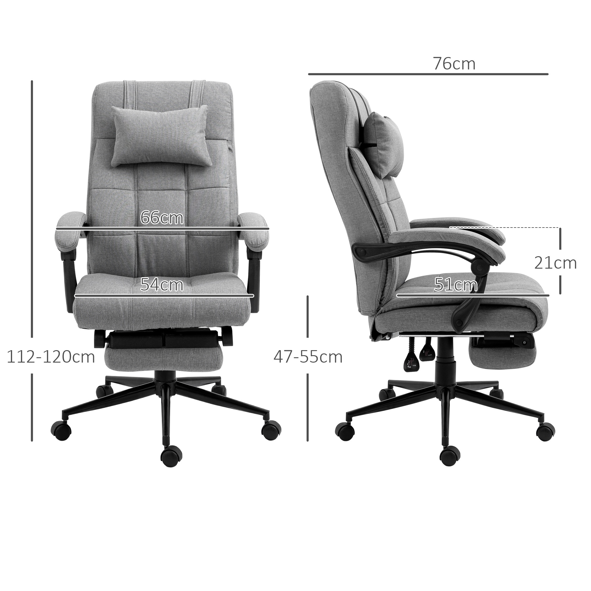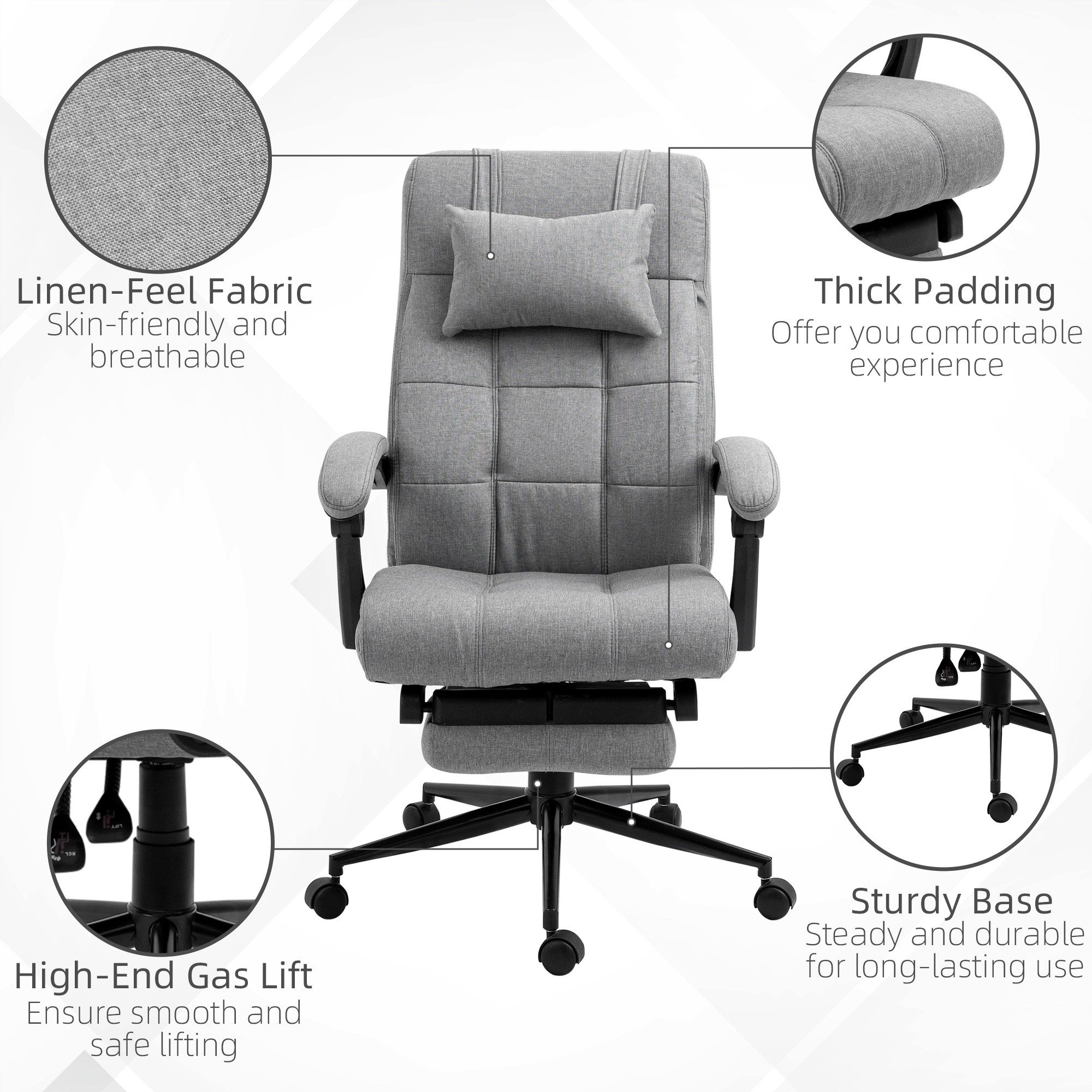 Kick comfort into action - do it with this Vinsetto home office chair. A classically designed piece - comes with a high back, thick padding, armrests, and 360° swivel seat - with a removable pillow for extra head and neck support. The supportive base comes with rolling wheels to move around easily. Completed with a pull-out footrest to elevate your lower body, whenever you want.