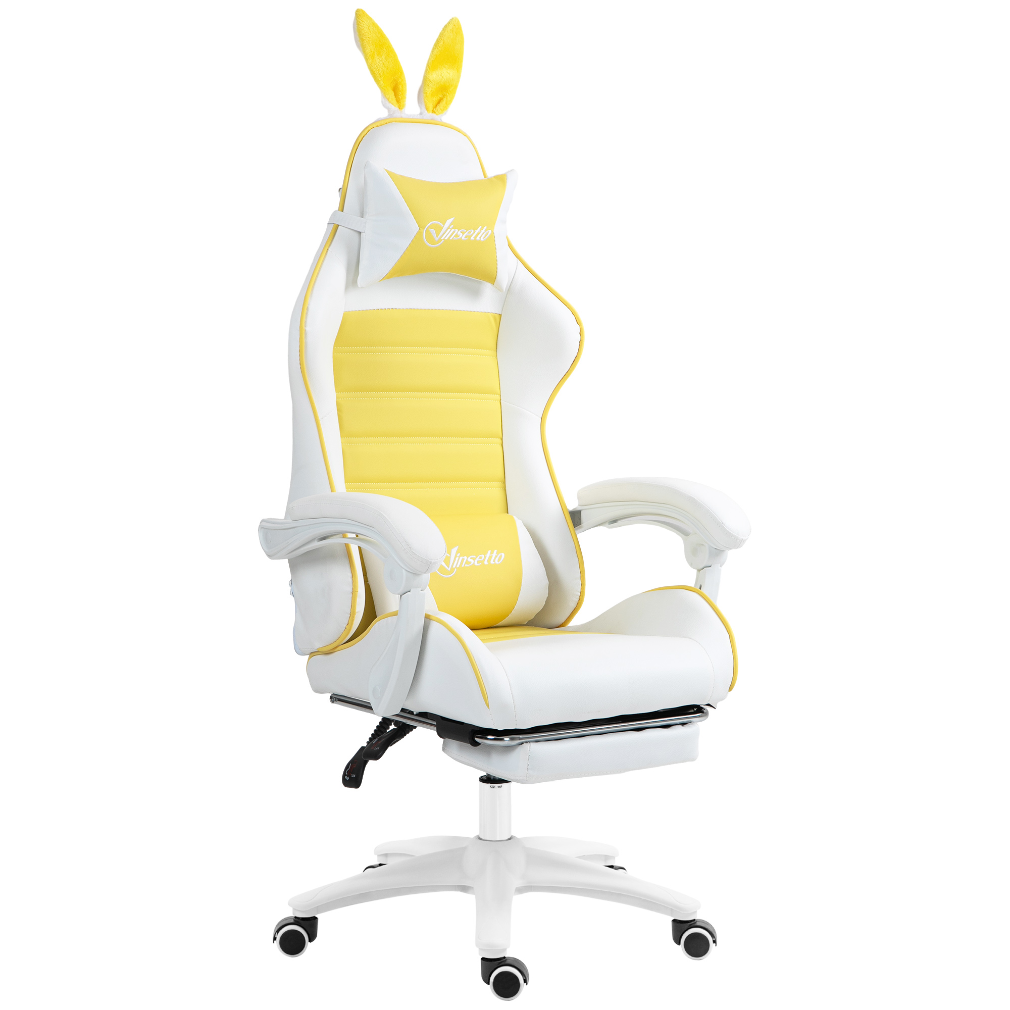 Elevate your gaming experience with the Vinsetto gaming chair, featuring playful faux bunny ears. Enjoy complete comfort with its 135° reclining back, manual footrest, thick padding, high back and supportive armrests. Wrapped in striking colour-block faux leather, this PC chair combines fun and functionality seamlessly.