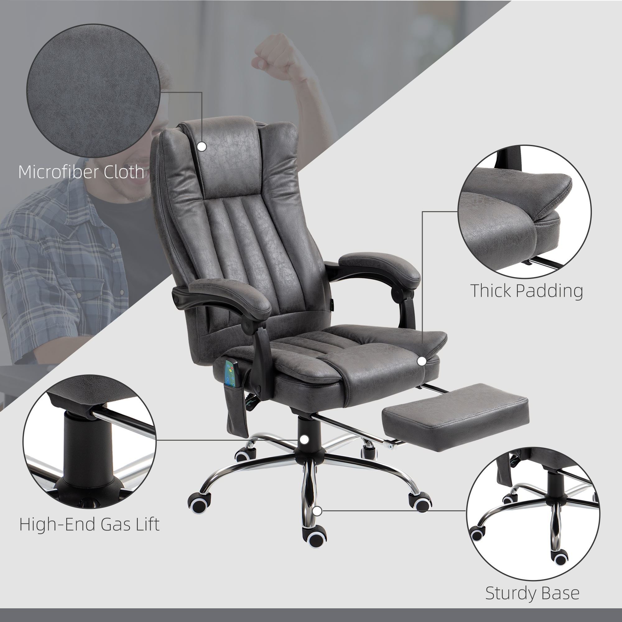 - Six vibration massage points on the back, lower back, and thighs