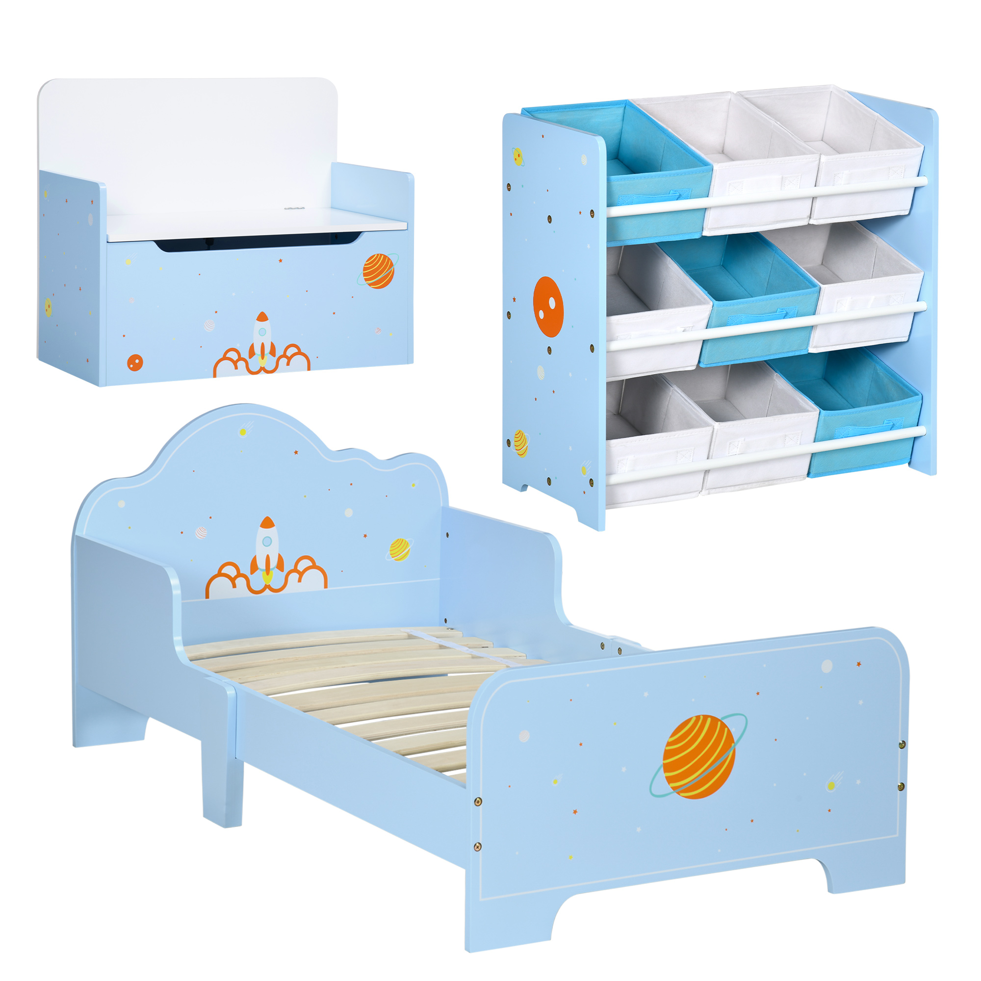 With a bed, a toy box bench and a storage unit, this ZONEKIZ kids furniture set is perfect for your child's room. Its light blue appearance is a vibrant addition to the bedroom. Gone are the days of everything scattered across the floor, it is perfect for keeping toys, books, clothes and more, ensuring their room stays tidy. Made from MDF, all edges are smooth and rounded for safety. Kids have their own space to play and rest.