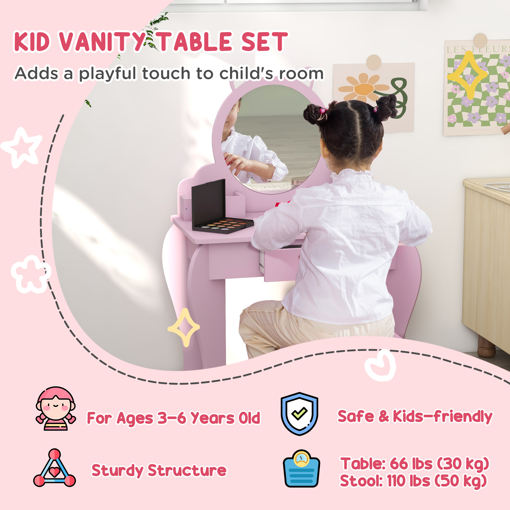 - Three-piece set, includes a vanity table, matching stool and kid's bed
